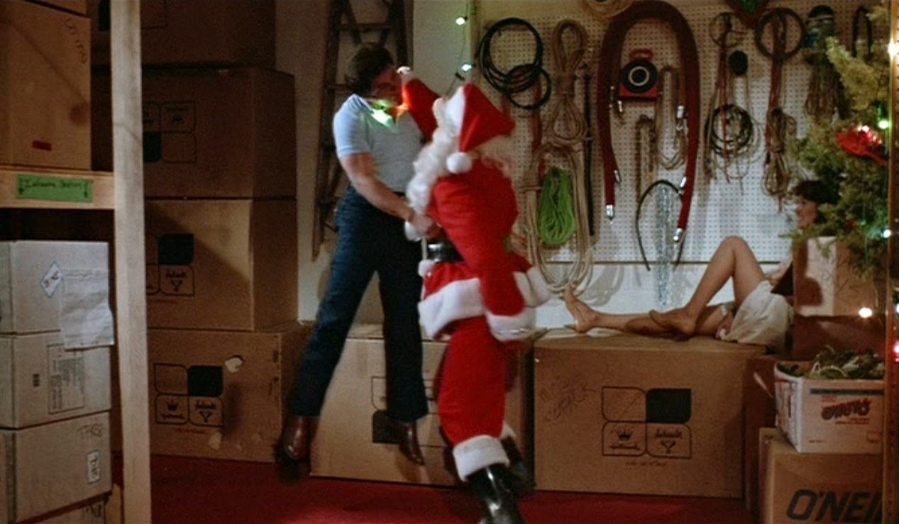 An infamously cheap, cheeky sequel, this was the result of director Lee Harry’s assignment to effectively re-edit considerable footage from the 1984 original into a brand new, sparsely budgeted feature. The first half is almost entirely footage from the earlier film as Billy’s disturbed incarcerated brother (Eric Freeman) reflects on his own damaging upbringing and murder rampage before killing his shrink and donning a Santa suit. Once Freeman’s story proper begins, the movie becomes an engagingly warped black comedy, with deliberately absurd killings involving car batteries, aerials and a terrific gore-parody of SINGIN’ IN THE RAIN (“I think you’ll enjoy this”, Freeman’s self-conscious voiceover notes). For all its flaws, PART 2 is a deliciously undisciplined early example of a self-aware slasher flick, with the new killer commenting on scenes from the earlier film and constant winks to the audience. Freeman, whose sneering, OTT performance is either brilliant or awful depending on your mood, says things like “Oh good, I love a chase!” during otherwise straight suspense scenes. The movie breaks the fourth wall entirely for a cinema sequence that sends up SILENT NIGHT DEADLY NIGHT’s notorious ad campaign before Freeman comically kills an annoying back row heckler while SILENT NIGHT, DEADLY NIGHT itself plays on the big screen! In this sequence and in other ways, this seemingly disposable movie surprisingly foreshadows post-modern horrors to come including ANGUISH and SCREAM.