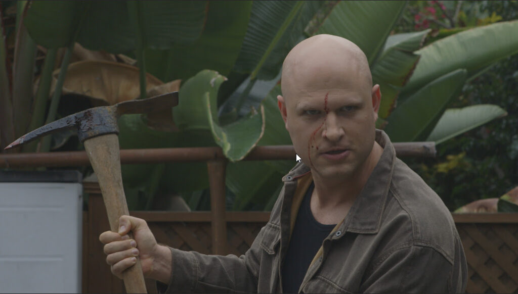 Beloved by audiences and critics alike, GARDEN PARTY MASSACRE is Blair’s follow-up to his much-lauded DEADLY REVISIONS. His latest is a fast-paced, wacky spoof in the vein of SHAUN OF THE DEAD and TUCKER AND DALE VS. EVIL. The fun begins when a friendly backyard gathering goes hilariously awry as an unexpected guest arrives. With a pickaxe. And an attitude.