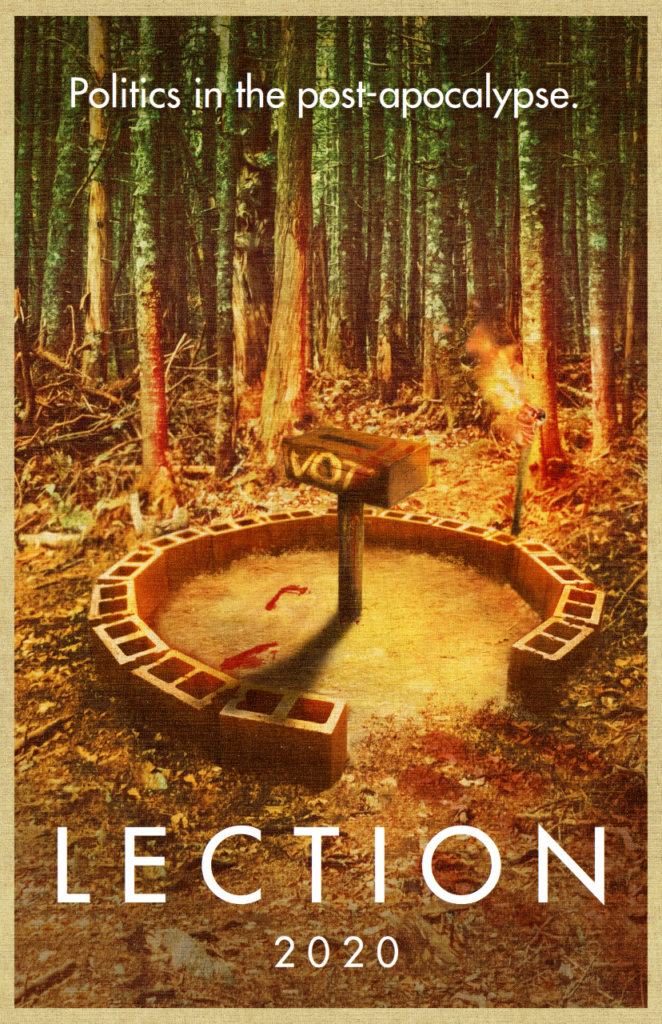 This is the fourth feature film for writer-director David Axe, following THE THETA GIRL, AZRAEL and last year’s distinctive, witty SHED. Axe, a former war correspondent, also moonlights as a Washington-based journalist and his graphic novel work includes the well-regarded war memoir “War Fix” (2006). Arriving in certain territories to coincide with the 2020 election year in the country that hated Hillary Clinton so much they voted for Donald Trump, this ambitious South Carolina-shot feature opens with an image of a bloodied hand reaching out to a ballot box marked “Vot”. This prologue sets the scene for a world in the wake of an unspecified apocalypse, where language and communication have broken down, spelling has dropped well below OFSTED expectations and the only real food left is fresh “bred” and in the hands of the elite. Music and dance still exist though, thankfully, no one owns an Adele album. As unrest grows amongst what remains of so-called civilisation, young Dot (Sanethia Dresch) is the only candidate running against current Mayor Mike Amason.