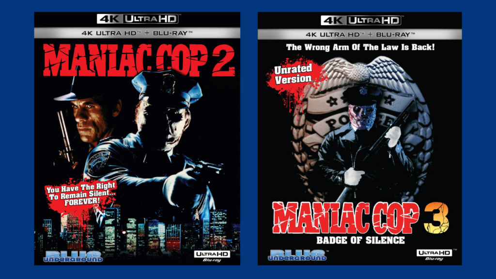 Blue Underground are upholding the law with the help of Officer Matt Cordell this November by releasing MANIAC COP 2 and MANIAC COP 3: BADGE OF SILENCE to 4K UHD on 16th November 2021.