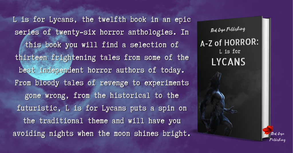 L is for Lycans, the twelfth book in an epic series of twenty-six horror anthologies. In this book you will find a selection of thirteen frightening tales from some of the best independent horror authors of today. From bloody tales of revenge to experiments gone wrong, from the historical to the futuristic, L is for Lycans puts a spin on the traditional theme and will have you avoiding nights when the moon shines bright.