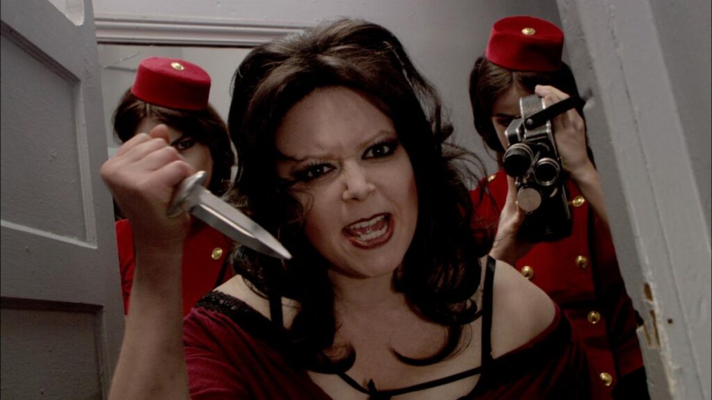 Following a world premiere at the San Francisco International Film Festival and a limited theatrical run in 2010, Peaches Christ’s All About Evil disappeared underground for years, becoming the stuff of legend. Now, the demented, blood-splattered classic is back for good, courtesy of a June 10th special edition Blu-ray release from Severin Films and a North American streaming release on Shudder June 13th.