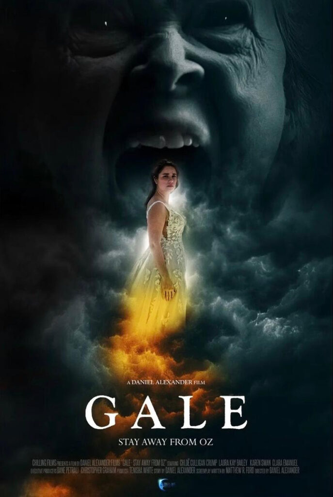 GALE: STAY AWAY FROM OZ (2023) blends many of the literary aspects of Oz stories with a hint of evil. The famous slippers are now their original white, not red ruby as in the film version. The picture is a clever blend of demons, and jump scares, only opening the door to the larger adventure. You can still see ties to the film with pictures, artifacts, and the evil mirror that anchors the story in a familiar way. The film boasts a stellar cast, especially the lead Emily (Chloë Crump) who carries the action well plus gets caught up in the world. The entire ensemble works subtly and brilliantly in evoking evil in moments of shrieking, subtle makeup change and good directorial decisions for camera work. One hopes for a larger continuation of this world.